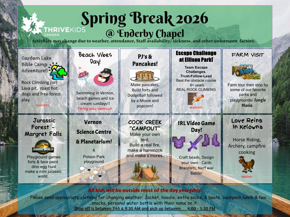 Activities: 2026 Spring Break Activity Calendar Downloadable